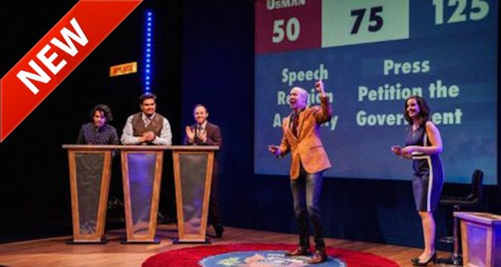 The quiz activity combines new technologies (interactive light buzzers, professional Quiz software, large screen, large selection of challenges, etc) and will challenge the groups to answer to the maximum number of questions correctly, just like in a real TV program! Each team will sit around one same table and will try to answer a series of questions raised by the presenter.